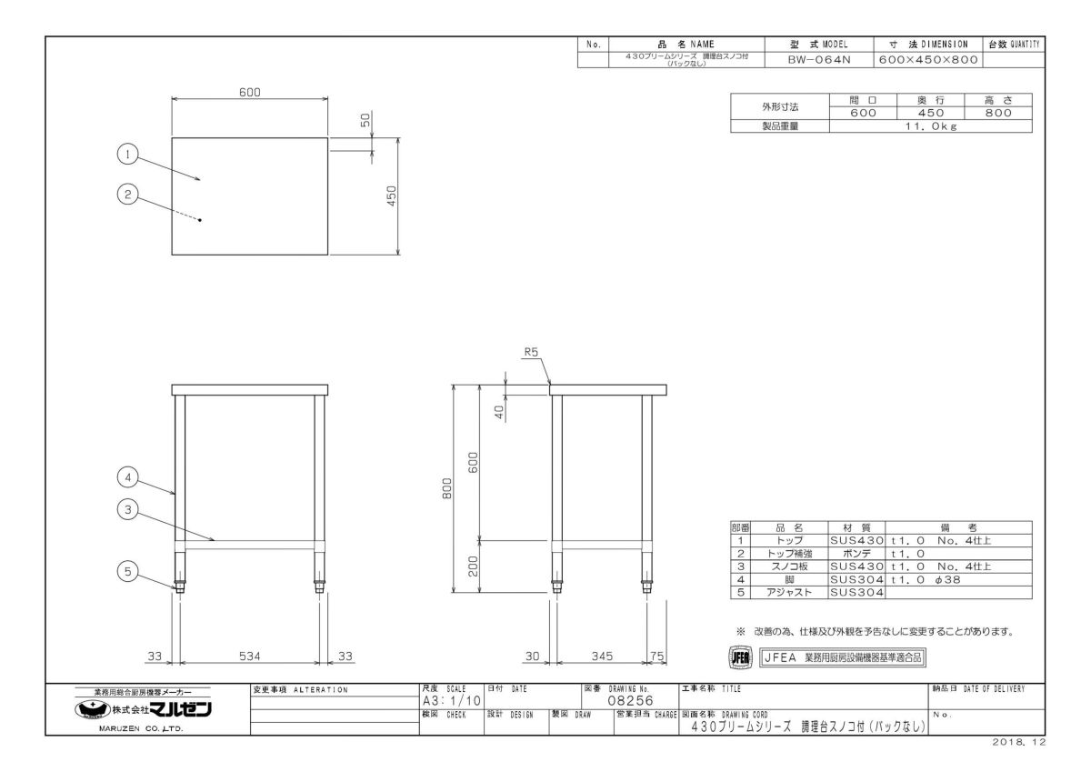 他の画像を見る BWD-064N 【マルゼン】作業台 引出しスノコ板付 バックガードなし 幅600×奥行450×高さ800mm【業務用/新品】【送料無料】 定価 ¥ 73,700 (税込)のところ 販売価格 ¥ 32,584 税込 詳細を見る