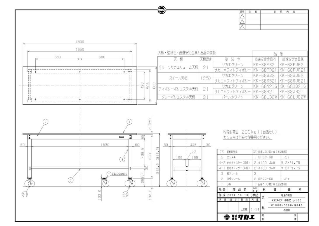 キャスター付き作業台