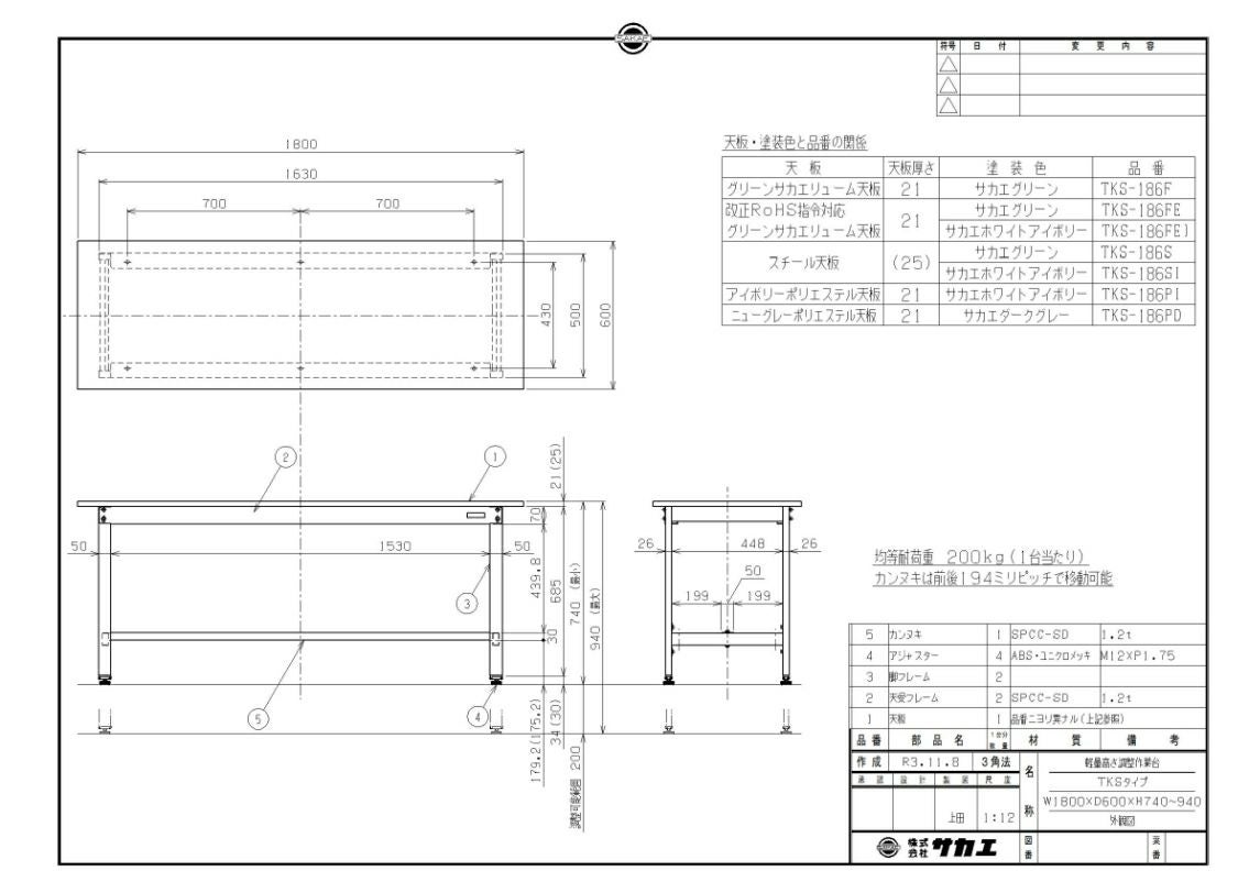 作業台の高さは、主に「800mm」と「850mm」の2種類があります。