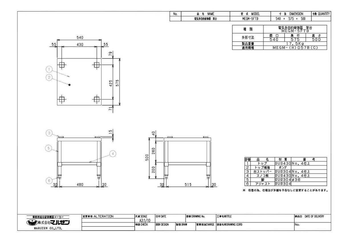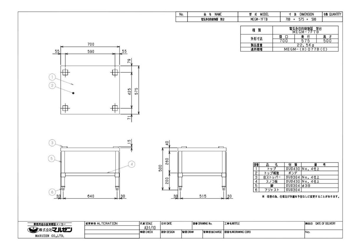 主に卓上のコンロを設置するための台で、調理場での作業には欠かせないアイテムです。