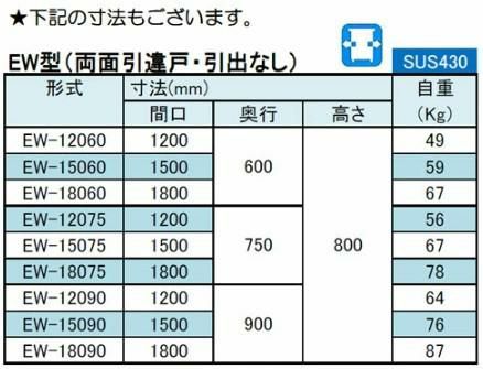 他の画像を見る EW-15075 【シンコー】 調理台 両面 幅1500×奥行750×高さ800 【業務用/新品】 【送料無料】 定価 ¥ 168,630 (税込)のところ 販売価格 ¥ 92,881 税込 詳細を見る