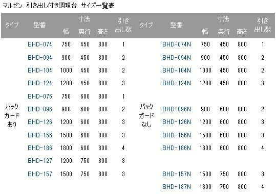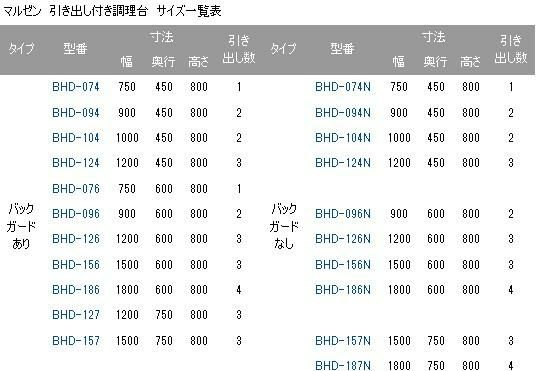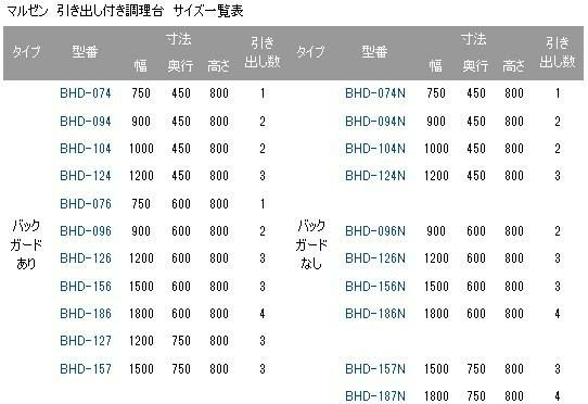 他の画像を見る BHD-187N 【マルゼン】 調理台 引出し引戸付 幅1800×奥行750×高さ800mm 【業務用/新品】 【送料無料】 定価 ¥ 244,200 (税込)のところ 販売価格 ¥ 106,955 税込 詳細を見る