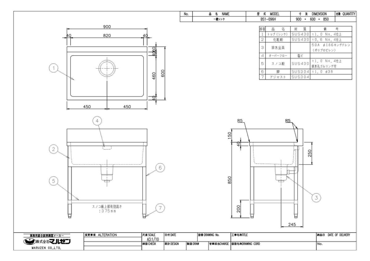他の画像を見る BS1-096T 【マルゼン】 一槽シンク バックガードなし 3面アール 幅900×奥行600×高さ800(mm) 【業務用/新品】【送料無料】 定価 ¥ 104,500 (税込)のところ 販売価格 ¥ 47,707 税込 詳細を見る