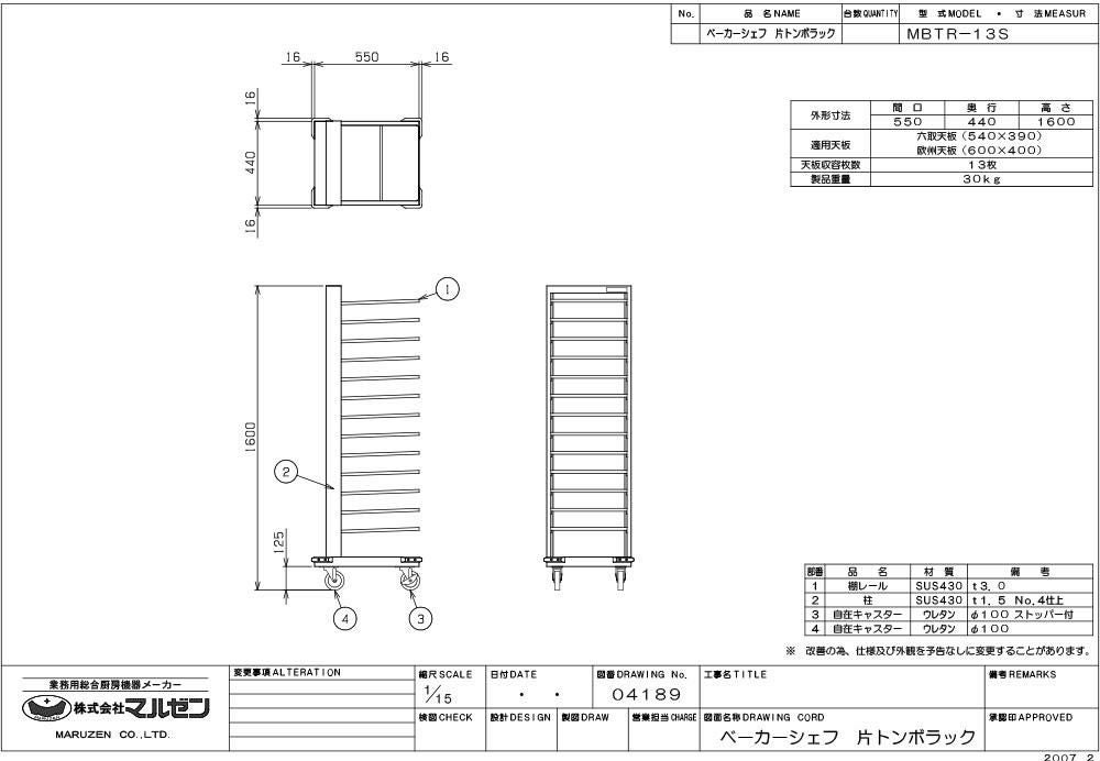 他の画像を見る 【業務用/新品】【マルゼン】トンボラック MBTR-13S 幅550×奥行440×高さ1600(mm)【送料無料】 定価 ¥ 116,600 (税込)のところ 販売価格 ¥ 87,427 税込