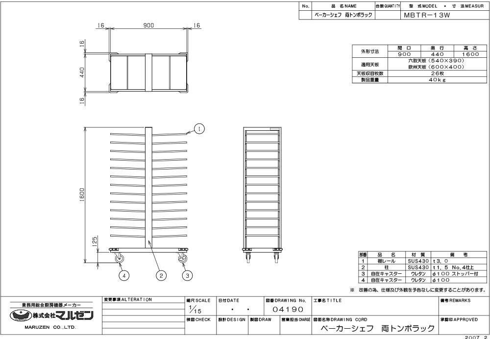 他の画像を見る 【業務用/新品】【マルゼン】トンボラック MBTR-13W 幅900×奥行440×高さ1600(mm)【送料無料】 定価 ¥ 203,500 (税込)のところ 販売価格 ¥ 153,005 税込