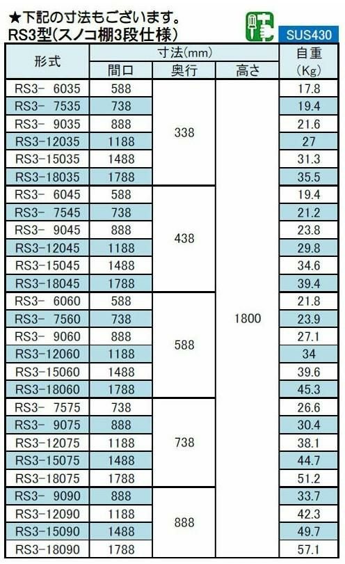 他の画像を見る シンコー ラック3段 スノコ 幅738×奥行438×高さ1800 [RS3-7545]【送料無料】【新品】【業務用】 定価 ¥ 62,260 (税込)のところ 販売価格 ¥ 35,321 税込