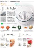 標準付属品:ボウル/ミニボウル(ミニボウル用スチール刃)/ボウルカバー/スチール刃/プラスチック刃/エッグビーター/スパチュラ/ツールボックス/盤取付棒/スライス盤(1mm)/丸千切り盤(径2mm)/大根おろし盤/インナーボウル