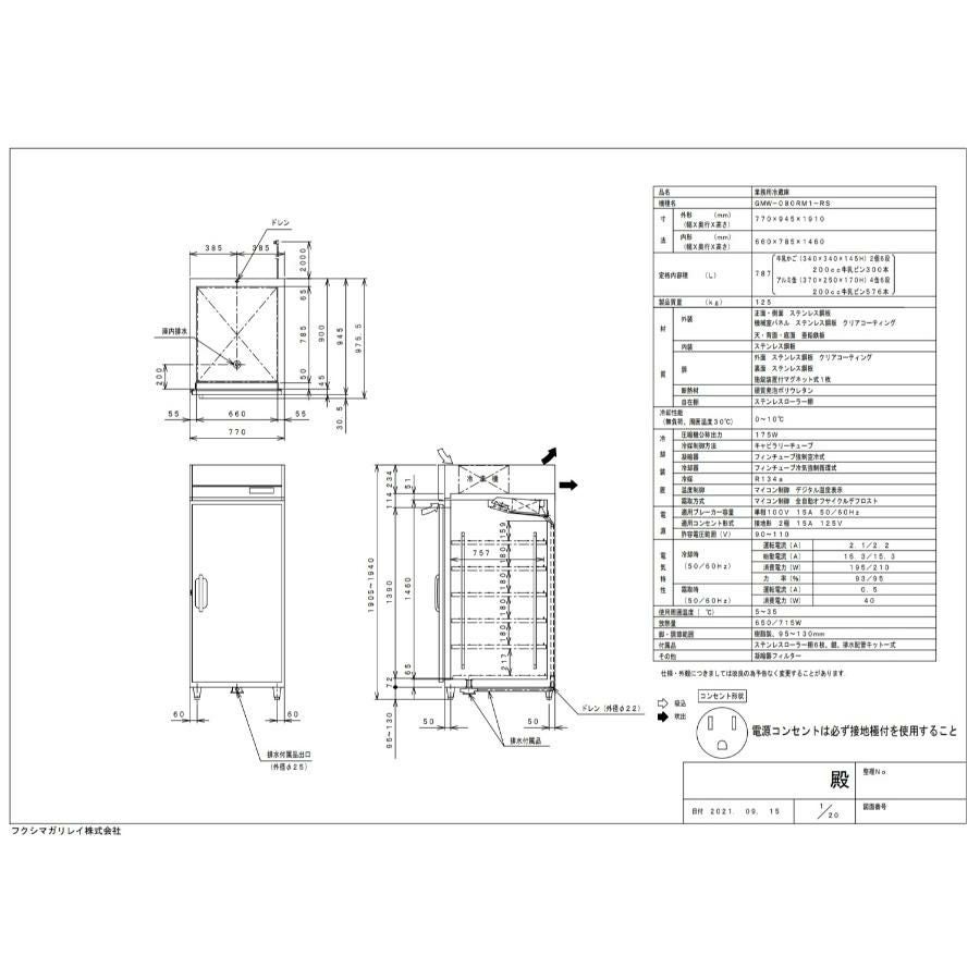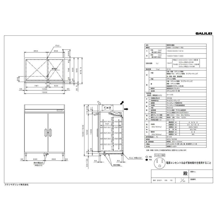 他の画像を見る 【フクシマガリレイ】縦型牛乳冷蔵庫 GMW-150RM-RS(旧型式:UMW-150RM6-RS) 幅1500×奥行945×高さ1910【送料無料】【業務用/新品】 定価 ¥ 2,196,700 (税込)のところ 販売価格 ¥ 693,695 税込 詳細を見る