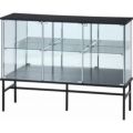 材質:■構造部材(天板/地板):プリント紙化粧繊維板 ■構造部材(柱/脚部):金属(鋼) ■構造部材(扉板/背板/側板/棚板):強化ガラス ■表面加工(柱):めっき(クロム) ■表面加工(脚部):エポキシ樹脂塗装