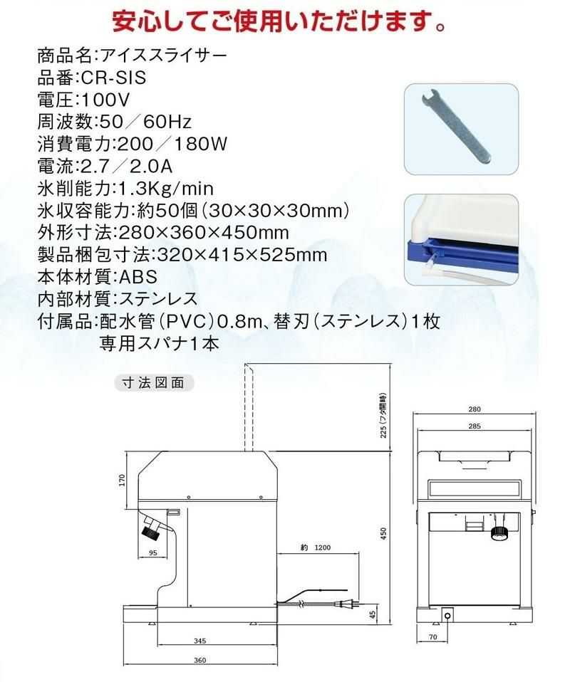 他の画像を見る 業界初!メーカー3年保証! CR-SIS エコレイズ キューブアイススライサー 電動式 かき氷機 幅320×奥行400×高さ450【新品/業務用】【送料無料】 定価 ¥ 140,800 (税込)のところ 販売価格 ¥ 37,305 税込