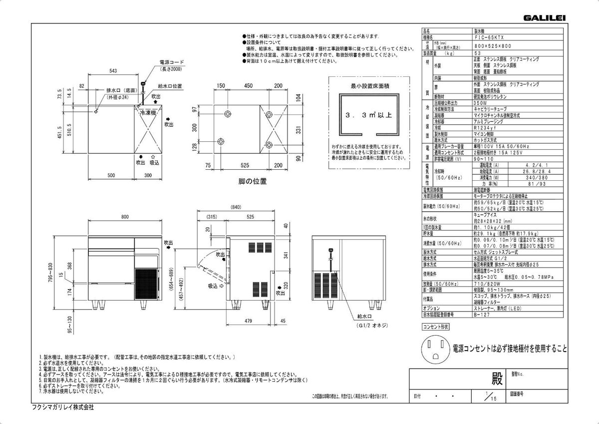 他の画像を見る 【在庫特価品│残りわずか!】FIC-35KTX1【保守メンテナンスサービス付セット商品】【フクシマガリレイ】ノンフロン製氷機35kg 幅500×奥行450×高さ800(mm) 単相100V 【業務用/新品】【送料無料】 定価 ¥ 0 (税込)のところ 販売価格 ¥ 241,478 税込 詳細を見る