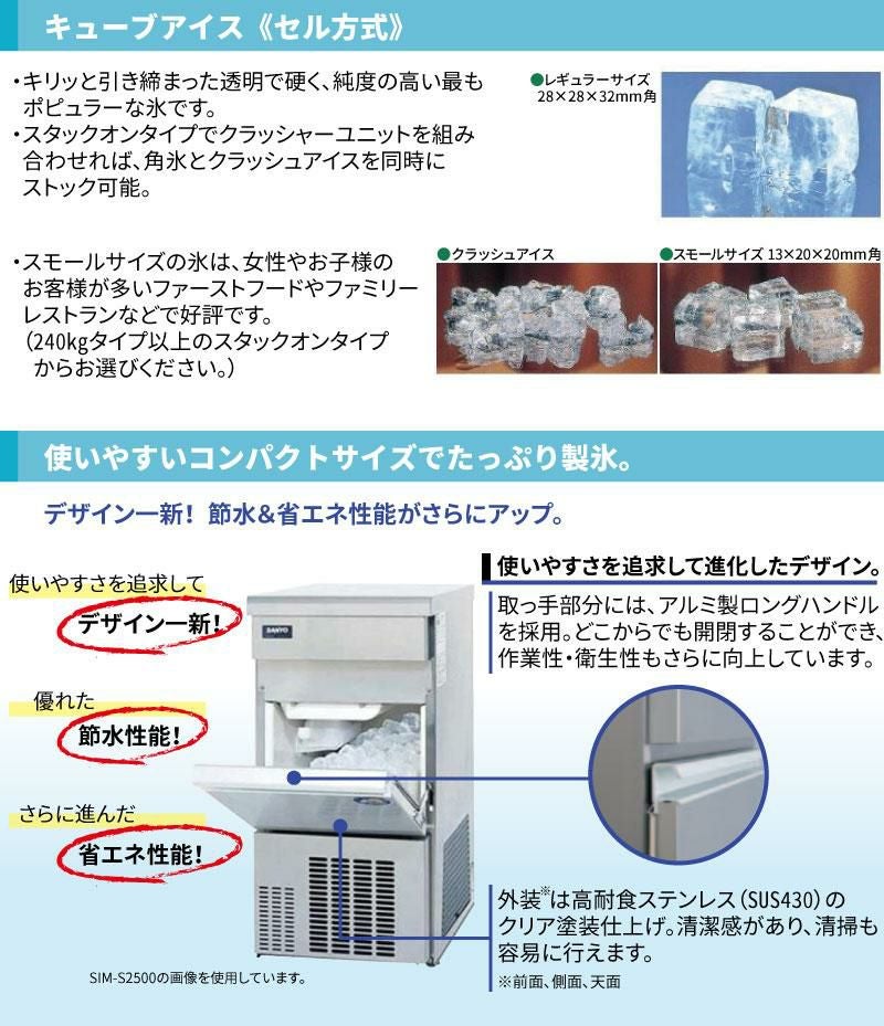 他の画像を見る 入れ替えキャンペーン商品/SIM-AS2500 キューブアイス製氷機 25kg【パナソニック】単相100V 幅395×奥行450×高さ800mm【業務用/新品】【送料無料】 定価 ¥ 0 (税込)のところ 販売価格 ¥ 218,191 税込 詳細を見る