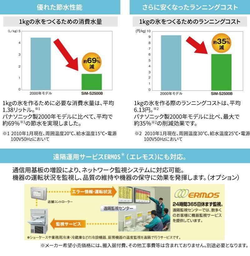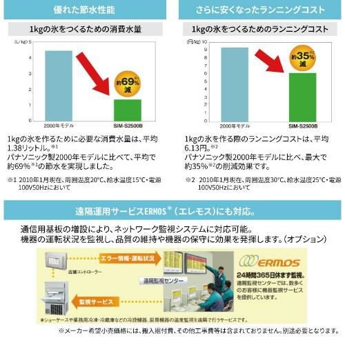 他の画像を見る SIM-AS2500 キューブアイス製氷機 25kg【パナソニック】単相100V 幅395×奥行450×高さ800mm【業務用/新品】【送料無料】 定価 ¥ 487,300 (税込)のところ 販売価格 ¥ 138,525 税込 詳細を見る