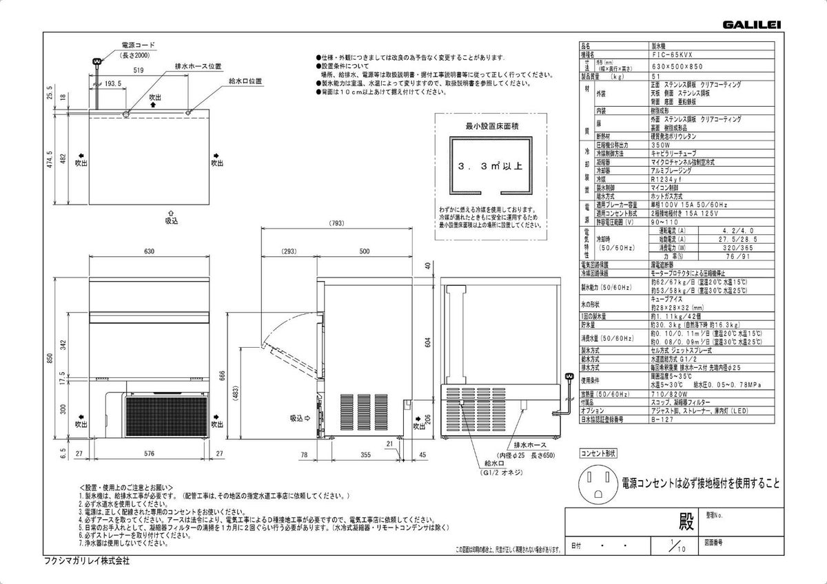 他の画像を見る 【保守メンテナンスサービス付セット商品】FIC-65KVX【フクシマガリレイ】 バーチカルタイプ 65kgタイプ 製氷機 キューブアイス 幅630mm×奥行500mm×高さ850mm【業務用/新品】【送料無料】 定価 ¥ 0 (税込)のところ ¥ 353,491 税込 詳細を見る