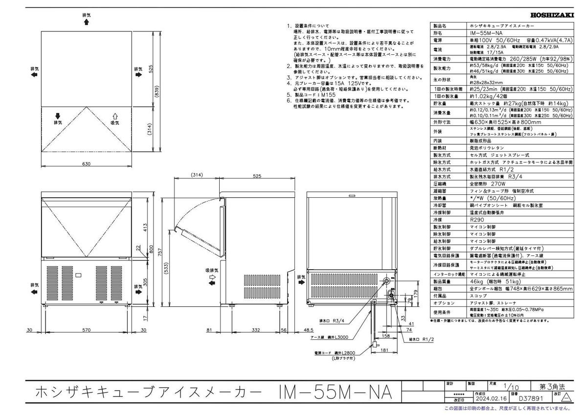 他の画像を見る IM-55M-2-A-2【ホシザキ】キューブアイスメーカー(バーチカル) 幅630×奥行525×高さ800(mm) 単相100V 【業務用/新品】【送料無料】 定価 ¥ 1,087,900 (税込)のところ 販売価格 ¥ 400,806 税込 詳細を見る
