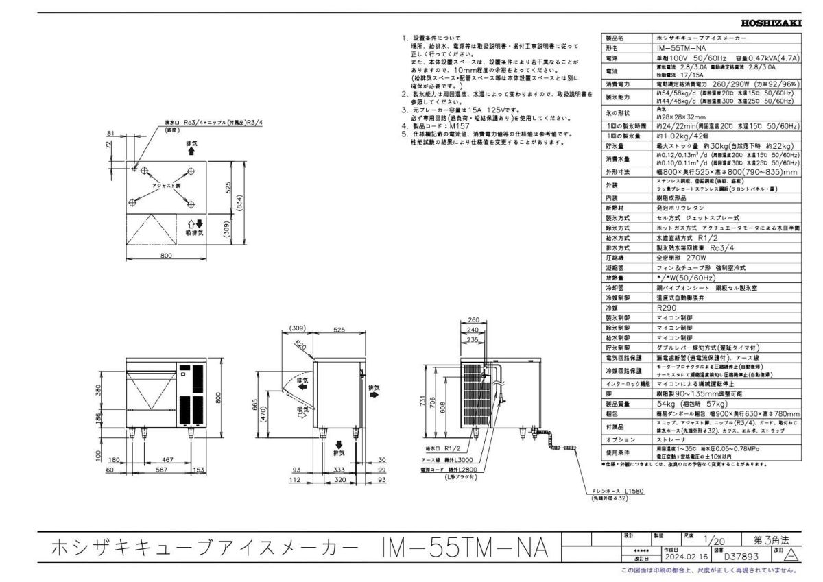 他の画像を見る IM-55M-2-A-2【ホシザキ】キューブアイスメーカー(バーチカル) 幅630×奥行525×高さ800(mm) 単相100V 【業務用/新品】【送料無料】 定価 ¥ 1,087,900 (税込)のところ 販売価格 ¥ 400,806 税込 詳細を見る