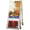 材質:フレーム:30mm×30mm本体アルミ押し出し材・アルマイト仕上(シルバー) パネル部:アルミ複合板(白)3mm厚・透明アクリルカバー1.5mm厚 シート:ターポリン(白) カタログケース:塩ビ(透明)A4縦・2列