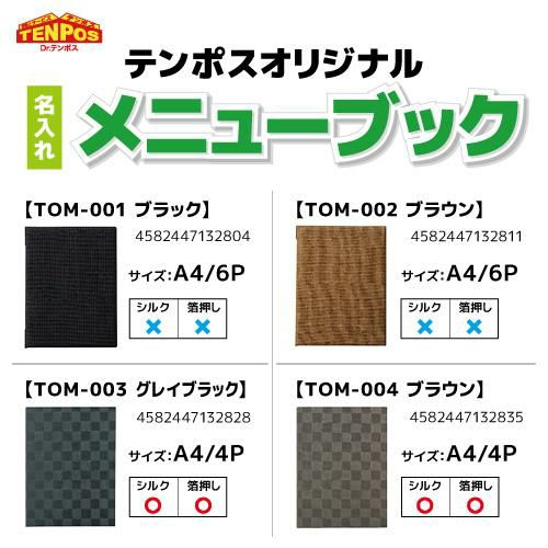 他の画像を見る 【即納可能】 メニューブック 麻タイプ (A4 6ページ仕様) TOM-001 ブラック (15冊入)(A4サイズ)/業務用/新品/小物送料対象商品 販売価格 ¥ 26,555 税込 詳細を見る