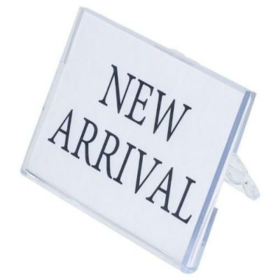 U型名札に脚を付けたPOPカード立て。