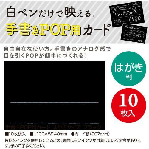他の画像を見る 手書きPOP用カード はがきサイズ ブラック 16-1752 10枚入×5冊/業務用/新品/小物送料対象商品 定価 ¥ 3,465 (税込)のところ 販売価格 ¥ 2,669 税込 詳細を見る