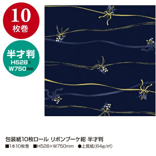 他の画像を見る 包装紙10枚ロール リボンブーケ紺 全判 1本10枚巻 縦757mm×横1060mm 業務用/新品/小物送料対象商品 定価 ¥ 1,760 (税込)のところ 販売価格 ¥ 1,355 税込 詳細を見る