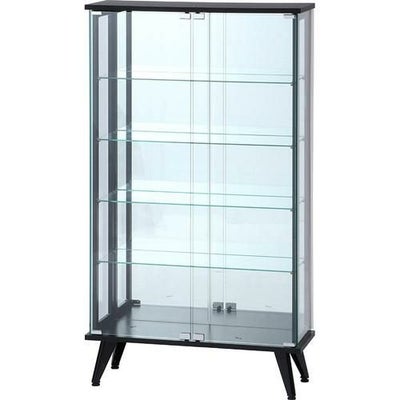 耐荷重(ガラス棚板):5kg■構造部材(天板・地板):天然木化粧パーティクルボード ■構造部材(柱部):金属(鉄)[エポキシ樹脂塗装] ■棚板・側板・扉板:強化ガラス