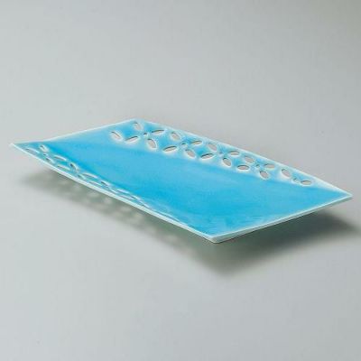 湖水青白菱紋透し前菜皿 26×15.5×3.3cm 201-158/業務用/新品/小物送料対象商品
