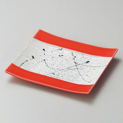 黒飛ばしラスター赤釉筋彫正角皿 18×16.8×2.2cm 200-149/業務用/新品/小物送料対象商品