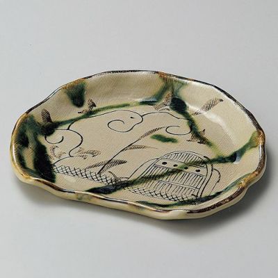 商品名:織部流し7.0半月皿