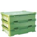 ●どこからでも握れるように全ての面に把手をつけました。積み重ね可能で、ずれ落ちたりせず収納に便利です。内部底面にスベリ止めがついております。