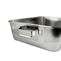商品名:18-8給食バット・固定ハンドル(K)(半カールフラットフランジ) 研磨無 612×389×H140mm