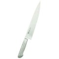 ●ハンドル部:18-8ステンレススチールモナカハンドル。ガラスビーズショット仕上げによる、手触りのソフト化、滑り防止。刃部とハンドル部の(溶接による)一体化で、雑菌等の付着防止など、従来の木ハンドルの衛生面での問題を克服しました。(手研本刃付)