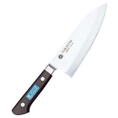 ●プラスチックハンドル(POM樹脂)、クローム・モリブデンを含有した特殊鋼を使用し、一本一本手研ぎ本刃付の錆びにくく良く切れる庖丁です。