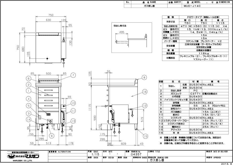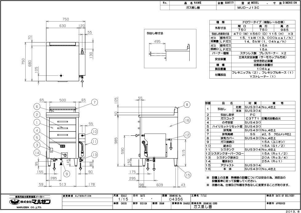 他の画像を見る 【業務用/新品】【マルゼン】ガス蒸し器 ドロワータイプ MUD-J14C 幅750×奥行750×高さ1115(mm) 業務用/新品/送料無料 定価 ¥ 666,600 (税込)のところ 販売価格 ¥ 361,603 税込 詳細を見る