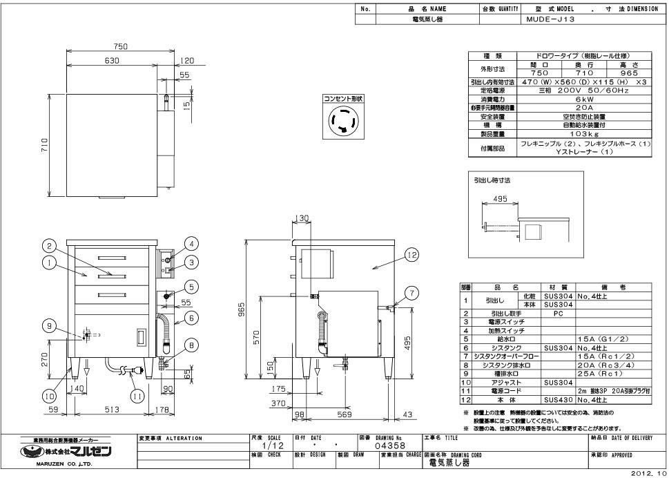 他の画像を見る 【業務用/新品】【マルゼン】電気蒸し器 ドロワータイプ MUDE-J13 幅750×奥行710×高さ965(mm) 三相200V 50/60Hz業務用/新品/送料無料 定価 ¥ 916,300 (税込)のところ 販売価格 ¥ 536,680 税込 詳細を見る