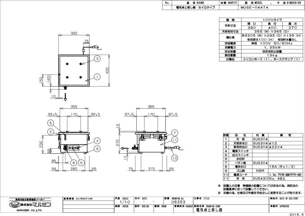 他の画像を見る 【業務用/新品】【マルゼン】電気卓上蒸し器 MUSE-044T4 幅390×奥行400×高さ270(mm) 単相100V 50/60Hz業務用/新品/送料無料 定価 ¥ 171,600 (税込)のところ 販売価格 ¥ 94,991 税込