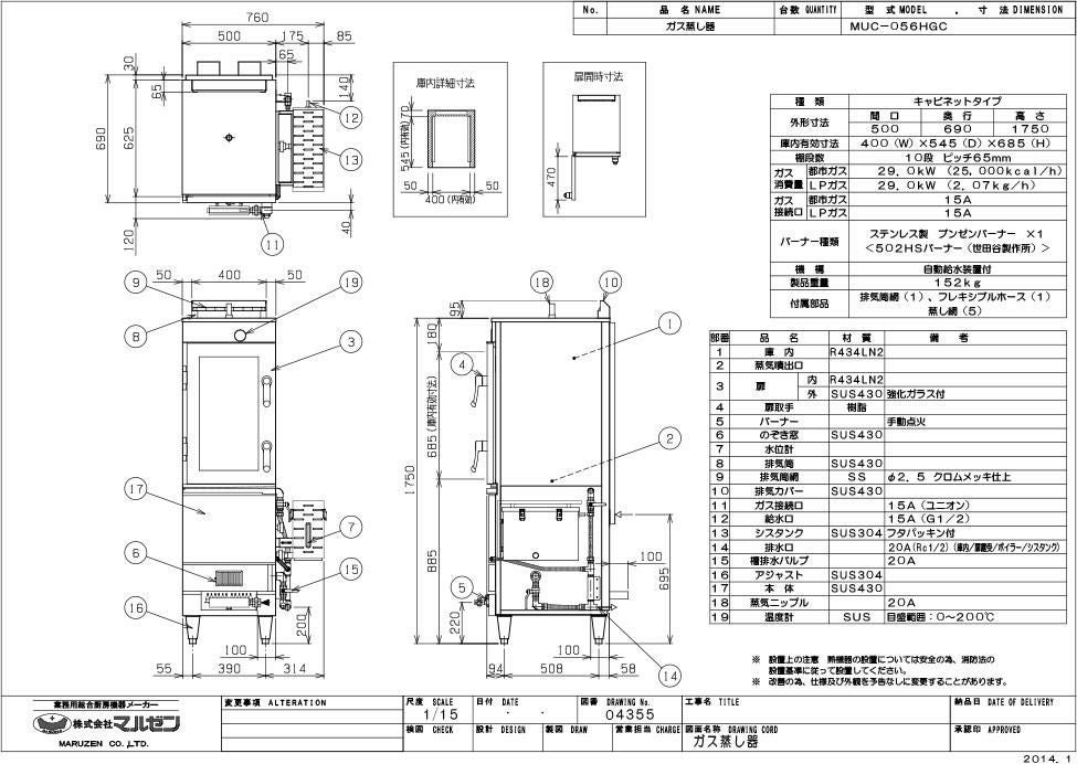 他の画像を見る 【業務用/新品】【マルゼン】ガス蒸し器 キャビネットタイプ MUC-056HGC 幅500×奥行690×高さ1750(mm) 業務用/新品/送料無料 定価 ¥ 1,076,900 (税込)のところ 販売価格 ¥ 613,800 税込