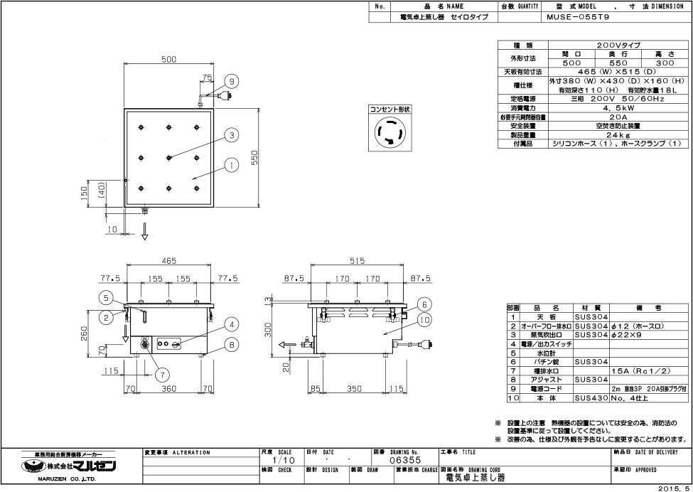 他の画像を見る 【業務用/新品】【マルゼン】電気卓上蒸し器 MUSE-055T1 幅500×奥行550×高さ300(mm) 三相200V 50/60Hz業務用/新品/送料無料 定価 ¥ 231,000 (税込)のところ 販売価格 ¥ 127,991 税込