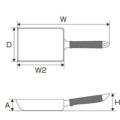 サイズ:縦(D)210×全体の長さ(W)410,取っ手を除いた長さ(W2)220×高さ(A)40、高さ(H)95(mm)、板厚:3.0mm