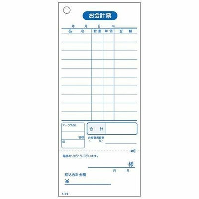 商品名:会計伝票 S-02(10冊入)単式ミシン入100枚