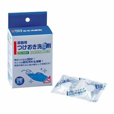・5日に1回、つけおき30分。ガンコな尿石もスッキリ洗浄。・クエン酸配合の尿器用洗浄剤。クエン酸等の力でこびりついたガンコな尿石汚れもすっきり溶解!・扱いやすい錠剤タイプ。・洗浄+除菌+消臭。・皮膚・プラスチックに優しい弱酸性。・ブルーの洗浄液が無色に変わって洗浄終了をお知らせ! 成分/ハロゲン系化合物(塩素系) 生産国/日本