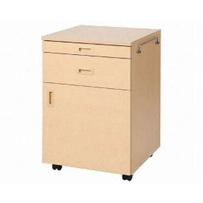 ・国産で、耐磨耗性・耐薬品性に優れたラクラク移動家具です。・テレビ台、食事台、日用品入れ、作業台に。・キャスター付きで移動がスムーズです。・天板、引出前板には樹脂エッジを使い当たりをソフトにしています。・折りたたみ式タオルハンガーが左右についています。・スライドテーブルにはすべて引き出した際にストッパー機能の付いたレールを使用しています。・引出には丈夫なスチールレールを使用しています。 サイズ/幅50×奥行50×高さ75cm 重さ/36kg 材質/低圧メラミン化粧板、特殊化粧シート板 納期/約2週間 生産国/日本 要組立