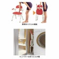 ・狭い浴室でも安心して使える♪最薄クラスの折りたたみ幅15cm。・片手ですばやく折りたため、自立します。・腕を曲げずに持ち運べるので、軽い力で楽に移動させられます。・折りたたみレバーが座面についているので、前からも後ろからも折りたたみを行えます。・折りたたみ幅が薄いので、浴室外の隙間にも保管ができます。・座面と背もたれに柔らかいクッションを使い、座っても痛くなく、冷たさを軽減できます。・背中を支える背もたれ形状なので、座位を安定させられます。