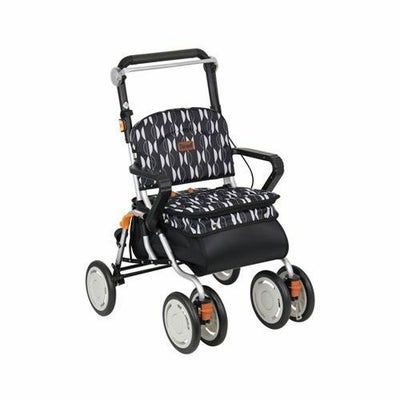 ・北欧デザイン生地のおしゃれな大容量シルバーカー。・幅36.5cmの幅広座面でゆったり休憩できます。・タイヤ取替え時期のお知らせ機能。タイヤに赤色が見えてきたら、取替え時期の目安です。 サイズ/幅54.5×奥行64×高さ81.5~94(6段階/2.5cm)cm、折りたたみ時:奥行37×高さ77cm、座面:幅36.5×奥行27cm、座面高:44cm 車輪サイズ/前輪19×後輪19cm 重さ/約6.6kg 材質/フレーム:アルミ、バッグ:ポリエステル・ナイロン バッグ容量/下袋:23L、後袋:5L 積載荷重/下袋:10kg、後袋:0.5kg 最大使用者体重/100kg 標準機能/折りたたみ、3WAYキャスター(360度・左右45度・固定)、手元ブレーキ、駐車ブレーキ、座面、杖・傘立て 生産国/中国 SGマーク取得商品