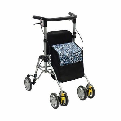 ・小柄な方でも使いやすいスリムな歩行車。・狭い場所も小回りがきき、操作しやすい。・使用時、収納時もコンパクトな横幅で小回りがきいて扱いやすい。・使いやすいバッグ。荷物の出し入れがしやすい仕様。フタ部分にはチャック式のポケットがあり、小物が入れられます。 サイズ/幅48×奥行60×高さ77.5~86.5(4段階/3cm)cm、折りたたみ時:奥行33×高さ69cm、座面:幅31×奥行26cm、座面高:44cm、ハンドル内幅:約37cm 車輪サイズ/前輪14.5×後輪14.5cm 重さ/4.9kg 材質/フレーム:アルミ、バッグ:ポリエステル バッグ容量/8L 積載荷重/5kg 最大使用者体重/75kg 標準機能/折りたたみ、3WAYキャスター(360度・左右60度・固定)、手元ブレーキ、駐車ブレーキ、座面、杖・傘立て 生産国/台湾