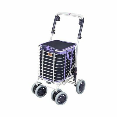 ・手元レバーを握ればブレーキ・押し下げれば停車ストッパーになる簡単操作のワイヤーカート。・スーパーなどの店内カゴが載せられます。レジまでそのままカートを押していけます。 サイズ/幅48.5×奥行49.5×高さ88~98(3段階/5cm)cm、折りたたみ時:奥行27×高さ78~88cm 車輪サイズ/前輪14×後輪17cm 重さ/5.4kg 材質/フレーム:アルミ、バッグ:(花柄赤)綿、(花柄紺・メッシュ紺)ポリエステル バッグ容量/30L 積載荷重/20kg 最大使用者体重/80kg 標準機能/折りたたみ、2WAYキャスター(360度・固定)、手元ブレーキ、駐車ブレーキ 生産国/日本 SGマーク取得商品