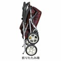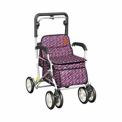 ・車輪が17.5cmと大きく、押しやすい。色柄も鮮やか!・手元にブレーキが付いているので重い荷物を載せての下り坂でも安心です。ハンドルから手を放すことなくレバーを握りブレーキをかけることができます。・手元ハンドブレーキレバーを握り、ロックレバーを上げることでブレーキをロックすることができます。・座面に腰掛ける時はサイドストッパーを引いておくとより安心です。・真ん中の反射板が暗い夜道の車からの視認性を確保!安全面もバッチリです。・お財布やめがねなど小物を入れるのに便利な小袋付き。・左右後輪の間を広く設計する事により足下スペースを広くし足運びもスムーズ。・折りたたみ自立式なので使わないときはコンパクトにたためます。 サイズ/幅50×奥行64×高さ84~92(4段階)cm、折りたたみ時:奥行27×高さ74cm、座面:幅36×奥行30cm、座面高:44cm 車輪サイズ/前輪17.5×後輪17.5cm 重さ/6.2kg 材質/フレーム:アルミ・合成樹脂、バッグ:ポリエステル バッグ容量/約26L 積載荷重/8kg 最大使用者体重/100kg 付属品/レインカバー 標準機能/折りたたみ、3WAYキャスター(360度、左右45度、固定)、手元ブレーキ、駐車ブレーキ、座面、杖・傘立て 生産国/台湾 SGマーク取得商品