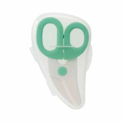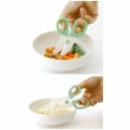 ・刃先がカーブしているので食材が逃げません。・お箸やスプーンできりにくいものもラクラクカット。 サイズ/ハサミ:幅6.5×長さ11.8cm、ケース:幅8×長さ12.5cm 重さ/20g(ハサミ) 材質/ABS樹脂、エラストマー樹脂、ポリプロピレン 耐熱温度/ハンドル:60度、ハサミ本体:80度、ケース:100度 生産国/中国 食洗機不可 乾燥機不可