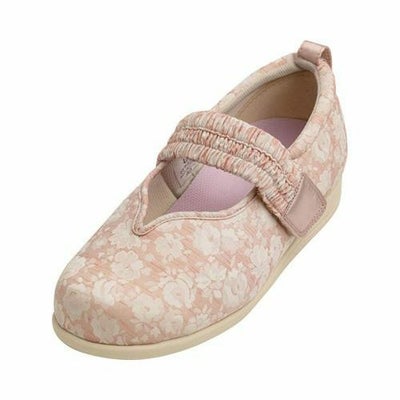 ・上品な花柄で気分も明るく。・食い込みにくい履き口ライン。・締め付けず安定感のあるゴムベルト。 サイズ/S:21.0~21.5cm、M:22.0~22.5cm、L:23.0~23.5cm、LL:24.0~24.5cm、3L:25.0~25.5cm、ワイズ:3E 重さ/約170g(片足Lサイズ) 材質/表・内素材:ポリエステル100%、底材:合成底(EVA) 生産国/中国 抗菌加工・防臭加工(インソール・中底のみ)、撥水加工 屋外&室内用 男女兼用