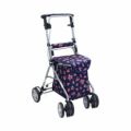・アルミ車体の軽量タイプ。収納力+買い物カゴ置き付きで便利。・折りたたんでコンパクトに自立します。 サイズ/幅46.5×奥行52×高さ84~91.5(3段階/4cm)cm、折りたたみ時:奥行28×高さ64cm、座面:幅27×奥行23cm、座面高:48cm 車輪/前輪13×後輪15cm 重さ/4.4kg 材質/フレーム:アルミ(粉体塗装)、バッグ:(ブラウン・ブルー)ビニールレザー・(二筋格子ブルー・フローラルNB)ポリエステル バッグ容量/約14L 積載荷重/10kg 最大使用者体重/80kg 標準機能/折りたたみ、2WAYキャスター(左右60度・固定)、手元ブレーキ、駐車ブレーキ、座面、杖・傘立て SGマーク取得商品